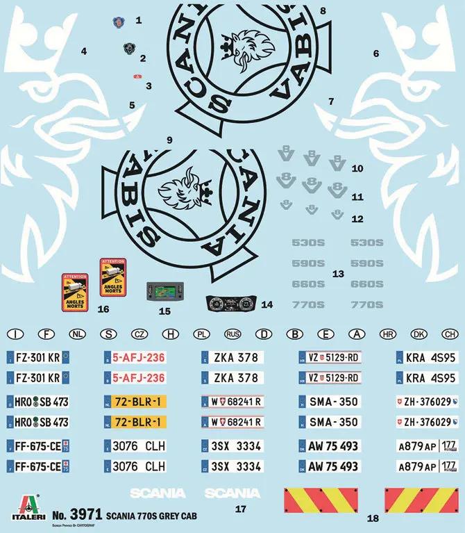 Scania S series – a key player in the industrial and heavy commercial vehicles market – has been designed to meet long-range logistics and transportation needs. The new S series was introduced by the famous Scandinavian manufacturer to the market in 2016, and included new innovative design solutions. Key design features were incorporated to optimize the use of the space inside the cabin to enhance driver comfort, and greater attention was afforded to more modern ‘active and passive’ safety systems to aid driver control and overall vehicle management. The attractive and contemporary new design also reflected the modern aerodynamics of the vehicle and its reduced fuel consumption targets. The Scania S770 4x2 "Normal Roof" with compact cab and the ”Highline” version with the oversized cab, are the industry ‘road tractors’ produced by the famous Scandanavian manufacturer of heavy commercial vehicles, with both versions offering excellent options for differing professional and operational requirements. Italeri 1/24 Scania 770S 4x2 Normal Roof "Grey Cab" Plastic Model Kit