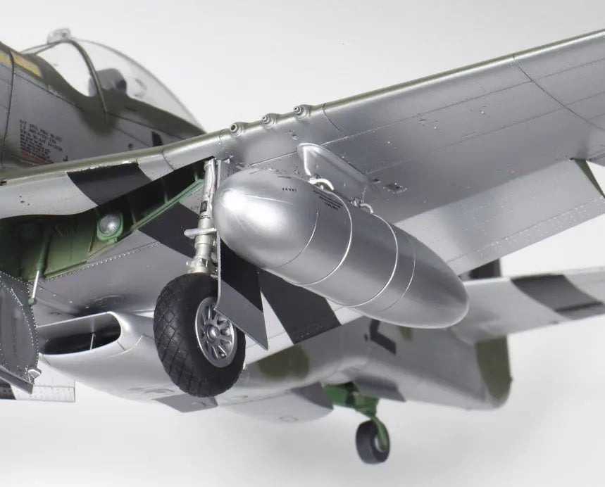 The P-51D Mustang is considered by many to be the best fighter aircraft of WWII. It incorporated advanced features such as a laminar flow wing and an efficient radiator design. Powered by the Packard-built Rolls-Royce Merlin V-1650 engine, it demonstrated superior performance and is widely considered to be the definitive variant of the Mustang. They were used to escort bombers such as B-17s and B-24s all the way to Germany and helped the Allies gain air superiority over Europe. Tamiya has reproduced this famous aircraft with utmost accuracy for addition to the 1/32 Scale Aircraft Series. The unmistakable form of the P-51D is accurately reproduced based on actual design drawings of the aircraft as well as thorough study of actual examples. Line it up with Tamiya's 1/32 scale Supermarine Spitfires and A6M Zeroes for a display of iconic WWII fighters.